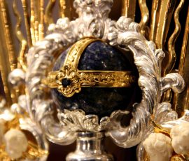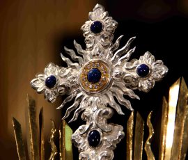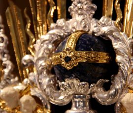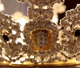 La Iglesia de San Julián, sede de la próxima centenaria Agrupación de Cofradías de Semana Santa, acogió el pasado viernes 27 de septiembre la histórica presentación del nuevo juego de coronas y cetros de Nuestra Señora del Rosario y su Bendito Hijo realizadas por el taller de orfebrería Montenegro bajo diseño de D. Curro Claros.
