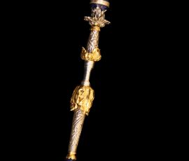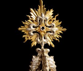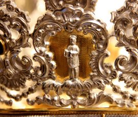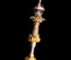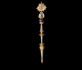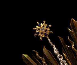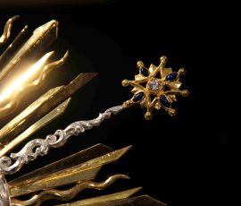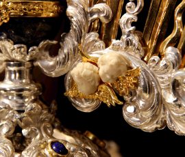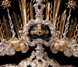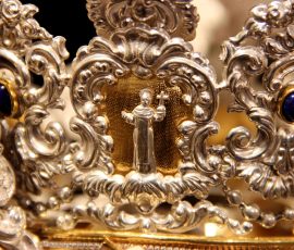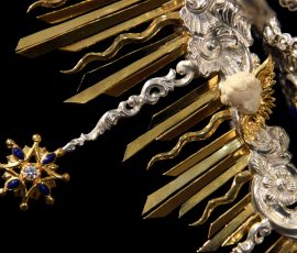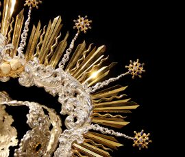 Igualmente acompaña a esta presea, una de menores dimensiones para el Divino Infante con idénticas técnicas e inscrustaciones, estando ocupadas las capillas del canasto por distintos símbolos pasionistas. Completan ‘El Sueño’ dos cetros para ambas imágenes en plata y plata sobredorada.
