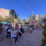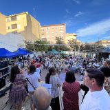 A medida que avanzaba la mañana, la plaza de Demófilo Peláez se llenaba de gente disfrutando de la comida y bebida que se ofrecía en la barra instalada por la Hermandad. Sin embargo, un inesperado aguacero deslució momentáneamente la jornada matinal. Pero tan pronto como escampó, el público regresó rápidamente a sus mesas y sillas para seguir deleitándose con los manjares y la buena compañía.